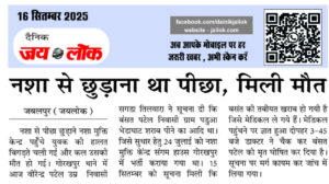 जबलपुर (जयलोक) नशा से पीछा छुड़ाने नशा मुक्ति केन्द्र पहुँचे युवक की हालत बिगड़ते चली गई और कल उसकी मौत हो गई। गोरखपुर थाने में आज वीरेन्द्र पटेल उम्र निवासी सगडा तिलवारा ने सूचना दी कि बंसत पटेल निवासी ग्राम पडुआ भेडाघाट शराब पीने का आदि था। जिसे सुधार हेतु 24 जुलाई को नशा मुक्ति … Continue reading नशा से छुड़ाना था पीछा, मिली मौत