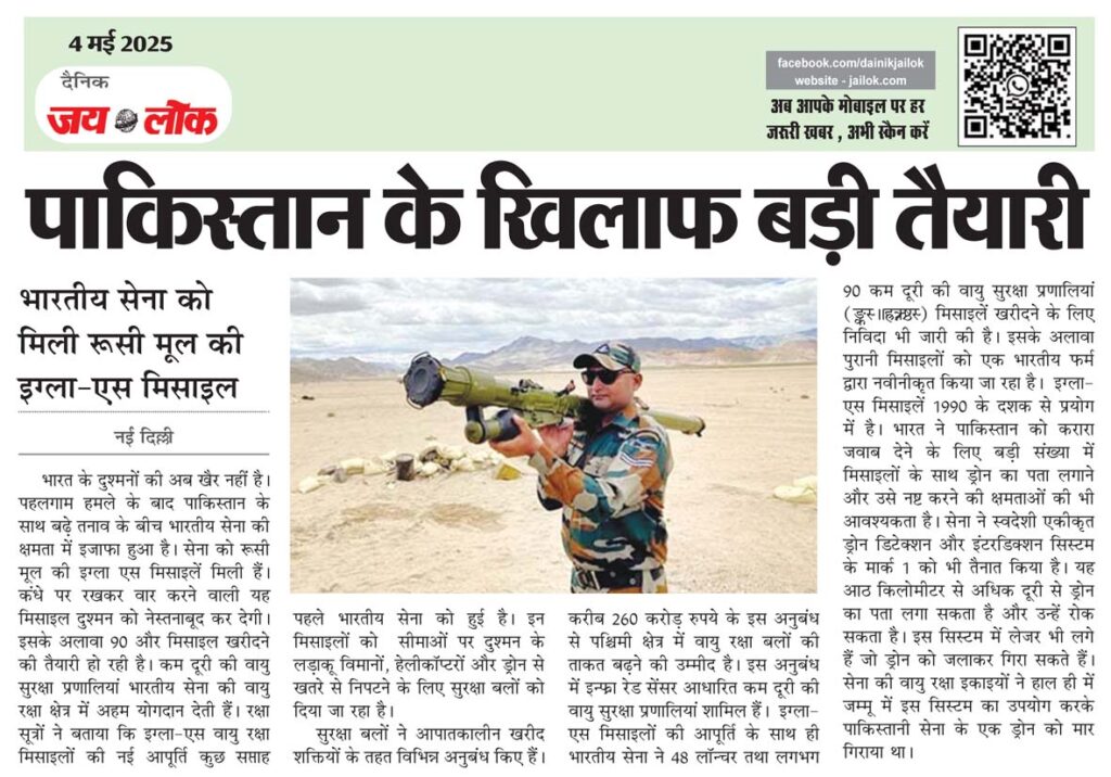 पाकिस्तान के खिलाफ बड़ी तैयारी, भारतीय सेना को मिली रूसी मूल की इग्ला-एस मिसाइल