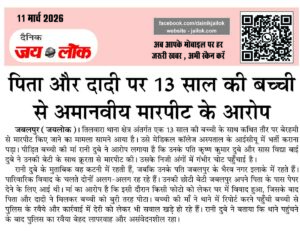 जबलपुर (जयलोक)। तिलवारा थाना क्षेत्र अंतर्गत एक 13 साल की बच्ची के साथ कथित तौर पर बेरहमी से मारपीट किए जाने का मामला सामने आया है। उसे मेडिकल कॉलेज अस्पताल के आईसीयू में भर्ती कराना पड़ा। पीडि़त बच्ची की मां रानी दुबे ने आरोप लगाया है कि उनके पति कृष्ण कुमार दुबे और सास विद्या … Continue reading पिता और दादी पर 13 साल की बच्ची से अमानवीय मारपीट के आरोप
