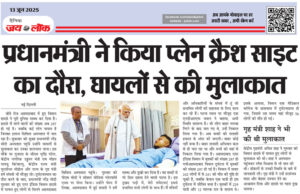 नई दिल्ली। बीते रोज अहमदाबाद में हुए विमान हादसे ने पूरी दुनिया स्तब्ध कर दिया है। हादसे में मरने वालों की संख्या अब 297 हो गई है। जबकि कई लोग घायल है जिनका इलाज सिविल अस्पताल में चल रहा है। शुक्रवार की सुबह प्रधानमंत्री नरेंद्र मोदी अस्पताल पहुंचे उन्होंने घायलों से मुलाकात कर उनका हालचाल … Continue reading प्रधानमंत्री ने किया प्लेन क्रैश साइट का दौरा, घायलों से की मुलाकात