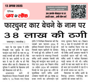 फारचुनर कार बेचने के नाम पर 38 लाख की ठगी