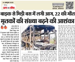 हैदराबाद। आंध्र प्रदेश के कर्नूल जिले के चिन्ना टेकुरु गांव में शुक्रवार तडक़े नेशनल हाईवे 44 पर एक भीषण हादसे में कम से कम 22 लोगों के जिंदा जलने की खबर है। यह संख्या और बढ़ सकती है। कावेरी ट्रैवल्स की एक प्राइवेट बस, जो हैदराबाद से बेंगलुरु जा रही थी, एक मोटरसाइकिल से टकरा … Continue reading बाइक से भिड़ी बस में लगी आग, 22 की मौत मृतकों की संख्या बढऩे की आशंका