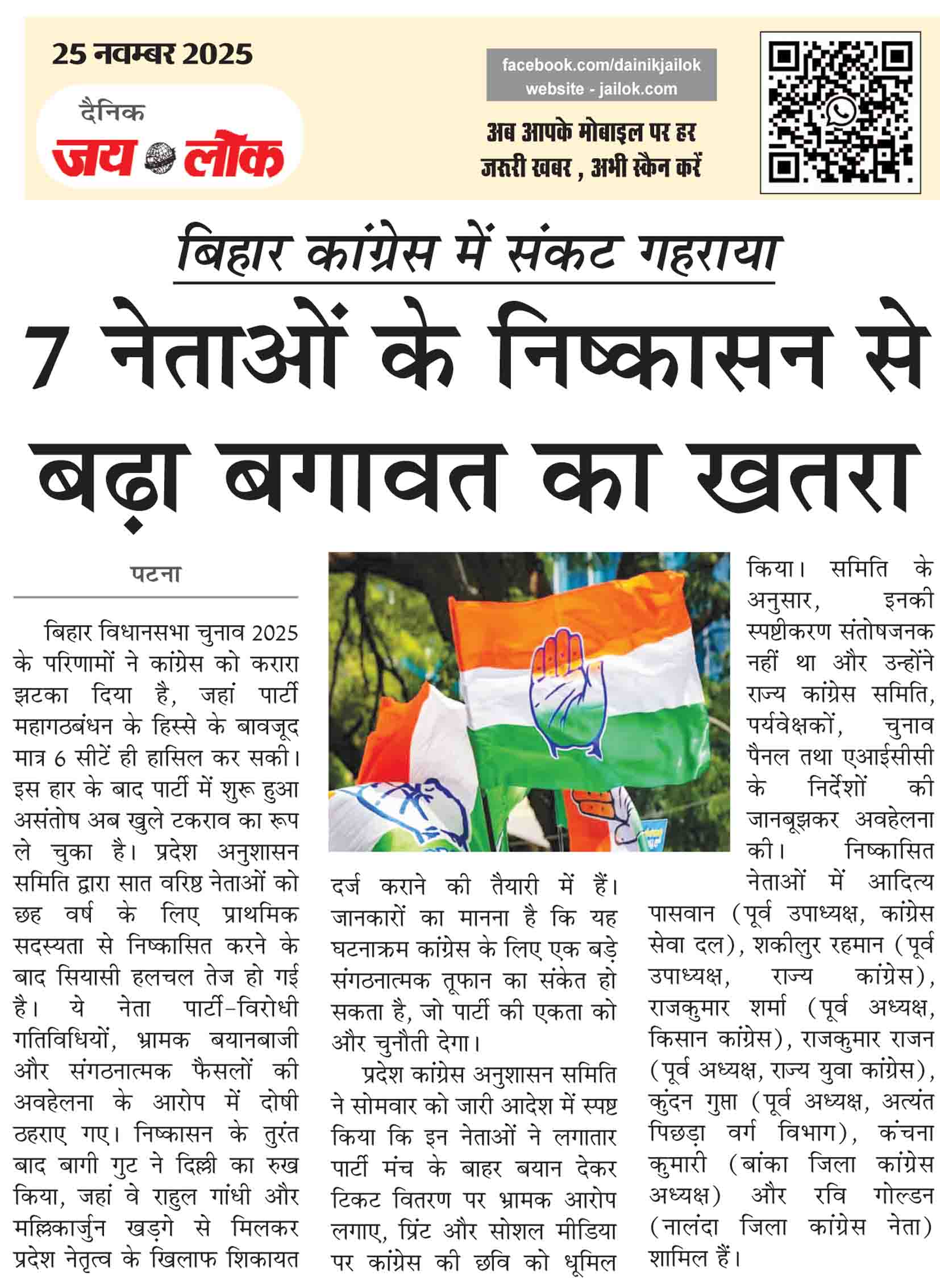 बिहार कांग्रेस में संकट गहराया, 7 नेताओं के निष्कासन से बढ़ा बगावत का खतरा