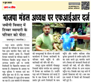 जमीनी विवाद में टिम्बर व्यापारी के परिवार को पीटा जबलपुर (जयलोक)। गढ़ा थाना अंतर्गत टिम्बर व्यापारी के परिवार के साथ भाजपा नेता द्वारा मारपीट किए जाने का मामला सामने आया है। जिसमें टिम्बर व्यापारी के परिवार वालों ने गिरीराज किशोर कपूर मंडल के अध्यक्ष प्रशांत दुबे व उसके रिश्तेदारों के खिलाफ मामला दर्ज कराया है। … Continue reading भाजपा मंडल अध्यक्ष पर एफआईआर दर्ज