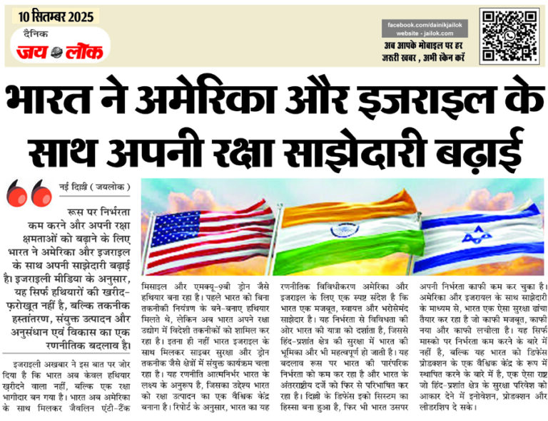 नई दिल्ली (जयलोक)। रूस पर निर्भरता कम करने और अपनी रक्षा क्षमताओं को बढ़ाने के लिए भारत ने अमेरिका और इजराइल के साथ अपनी साझेदारी बढ़ाई है। इजराइली मीडिया के अनुसार, यह सिर्फ हथियारों की खरीद-फऱोख़्त नहीं है, बल्कि तकनीक हस्तांतरण, संयुक्त उत्पादन और अनुसंधान एवं विकास का एक रणनीतिक बदलाव है। इजराइली अखबार ने … Continue reading भारत ने अमेरिका और इजराइल के साथ अपनी रक्षा साझेदारी बढ़ाई