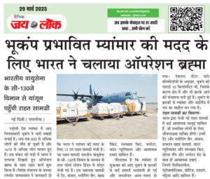 भारतीय वायुसेना के सी-130जे विमान से यांगून पहुँची राहत सामग्री नई दिल्ली (जयलोक)। पड़ोसी देश म्यांमार में आए विनाशकारी भूकंप ने भारी तबाही मचाई है। अब तक 800 से अधिक लोगों की मौत हो चुकी है और 1670 से अधिक लोग घायल हुए हैं। इस संकट की घड़ी में भारत ने तत्परता दिखाते हुए ऑपरेशन … Continue reading भूकंप प्रभावित म्यांमार की मदद के लिए भारत ने चलाया ऑपरेशन ब्रह्मा