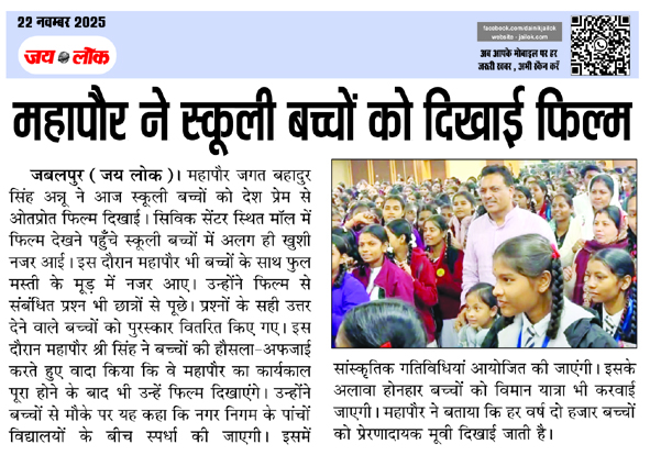 Home » जबलपुर » महापौर ने स्कूली बच्चों को दिखाई फिल्म