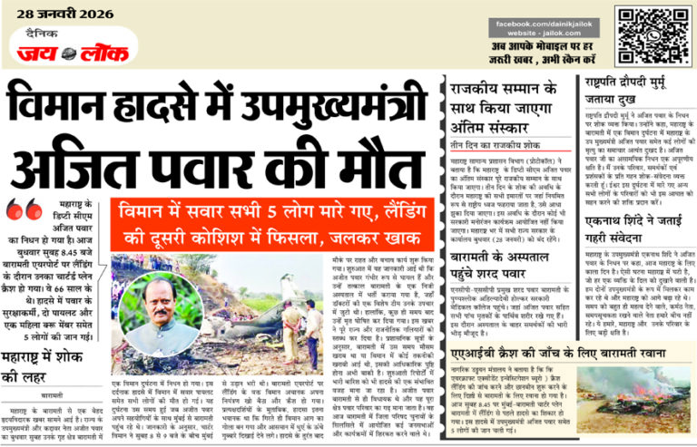 विमान में सवार सभी 5 लोग मारे गए, लैंडिंग की दूसरी कोशिश में फिसला, जलकर खाक महाराष्ट्र में शोक की लहर बारामती। महाराष्ट्र के डिप्टी सीएम अजित पवार का निधन हो गया है। आज बुधवार सुबह 8.45 बजे बारामती एयरपोर्ट पर लैंडिंग के दौरान उनका चार्टर्ड प्लेन क्रैश हो गया। वे 66 साल के थे। … Continue reading विमान हादसे में उपमुख्यमंत्री अजित पवार की मौत