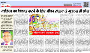 अर्जुन ज्ञान का उपासक नहीं है। वह किसी अधिविद्या की माँग नहीं कर रहा। अर्जुन, हमारी आपकी तरह सांसारिक द्वंद्वों में उलझा हुआ कर्मशील व्यक्तित्व है। इसलिए वह भगवान् के मार्गदर्शन में अपना कर्तव्य निश्चित करना चाहता है, कर्म का विधान जानना चाहता है। ओम प्रकाश श्रीवास्तव आईएएस अधिकारी तथा धर्म और अध्यात्म के साधक … Continue reading व्यक्तित्व का विकास करने के लिए जीवन संग्राम से गुजरना ही होगा
