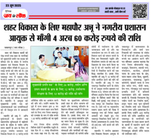 मुख्यमंत्री प्रगति पथ’’ के लिए 26 करोड़ ,नवीन अग्नि शमन वाहनों के क्रय के लिए 12 करोड़ ,पर्यावरण संरक्षण के लिए 10 करोड़ की राशि की मॉंग जबलपुर (जय लोक) । शहर को विकास कार्यो को पंख लगाने तथा शहर के नागरिकां को मुख्यमंत्री प्रगति पथ सडक़ की सौगात देने के संबंध में नगरीय प्रशासन … Continue reading शहर विकास के लिए महापौर अन्नू ने नगरीय प्रशासन आयुक्त से माँगी 4 अरब 60 करोड़ रुपये की राशि