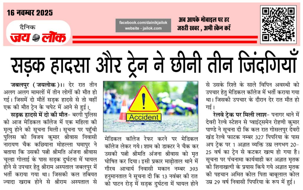 सडक़ हादसा और ट्रेन ने छीनी तीन जिंदगियाँ