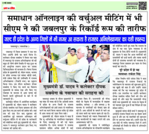 समाधान ऑनलाइन की वर्चुअल मीटिंग में भी सीएम ने की जबलपुर के रिकॉर्ड रूम की तारीफ