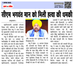 सीएम भगवंत मान को मिली हत्या की धमकी