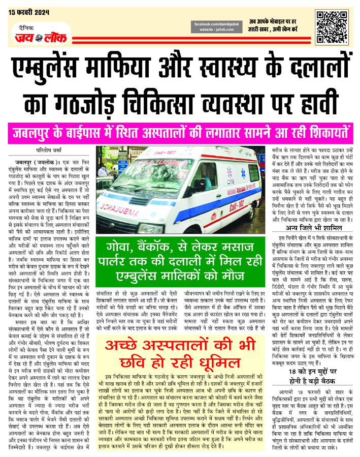 एम्बुलेंस माफिया और स्वास्थ्य के दलालों का गठजोड़ चिकित्सा व्यवस्था पर हावी