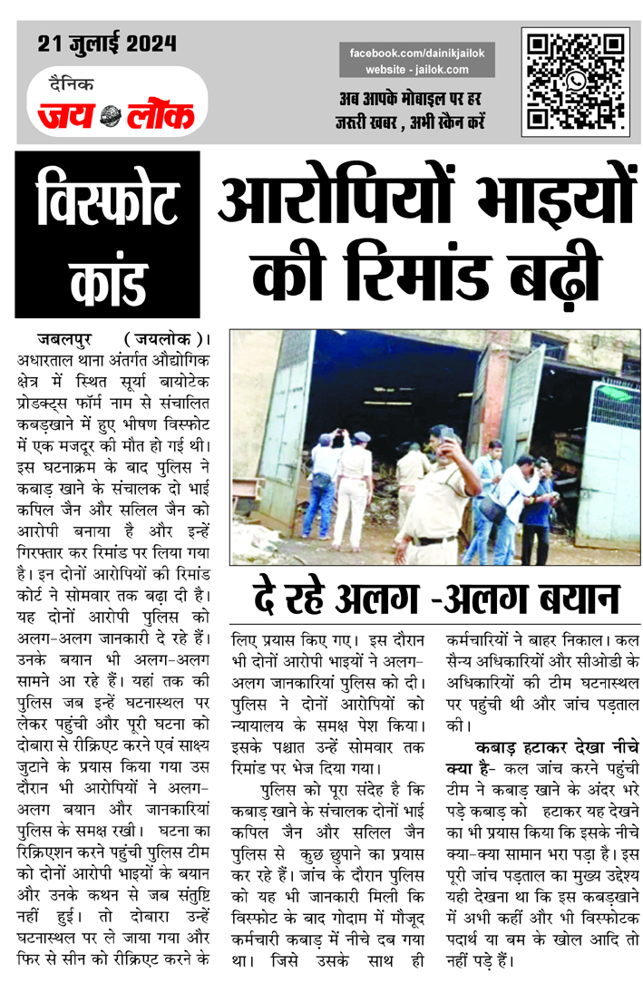 विस्फोट कांड : आरोपियों भाइयों की रिमांड बढ़ी , दे रहे अलग -अलग बयान