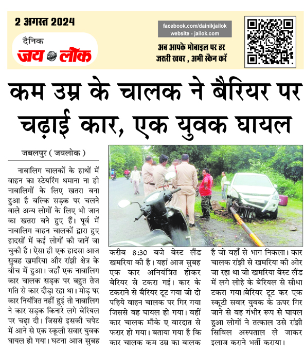कम उम्र के चालक ने बैरियर पर चढ़ाई कार, एक युवक घायल