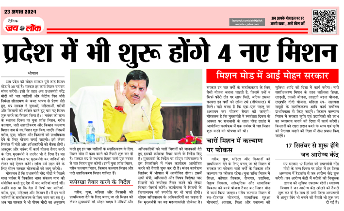 प्रदेश में भी शुरू होंगे 4 नए मिशन : मिशन मोड में आई मोहन सरकार