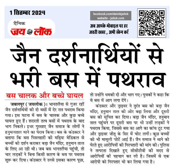 जैन दर्शनार्थियों से भरी बस में पथराव बस चालक और बच्चे घायल