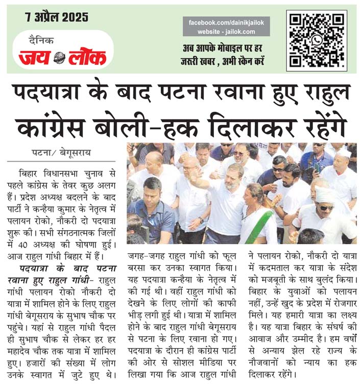 पदयात्रा के बाद पटना रवाना हुए राहुल कांग्रेस बोली-हक दिलाकर रहेंगे