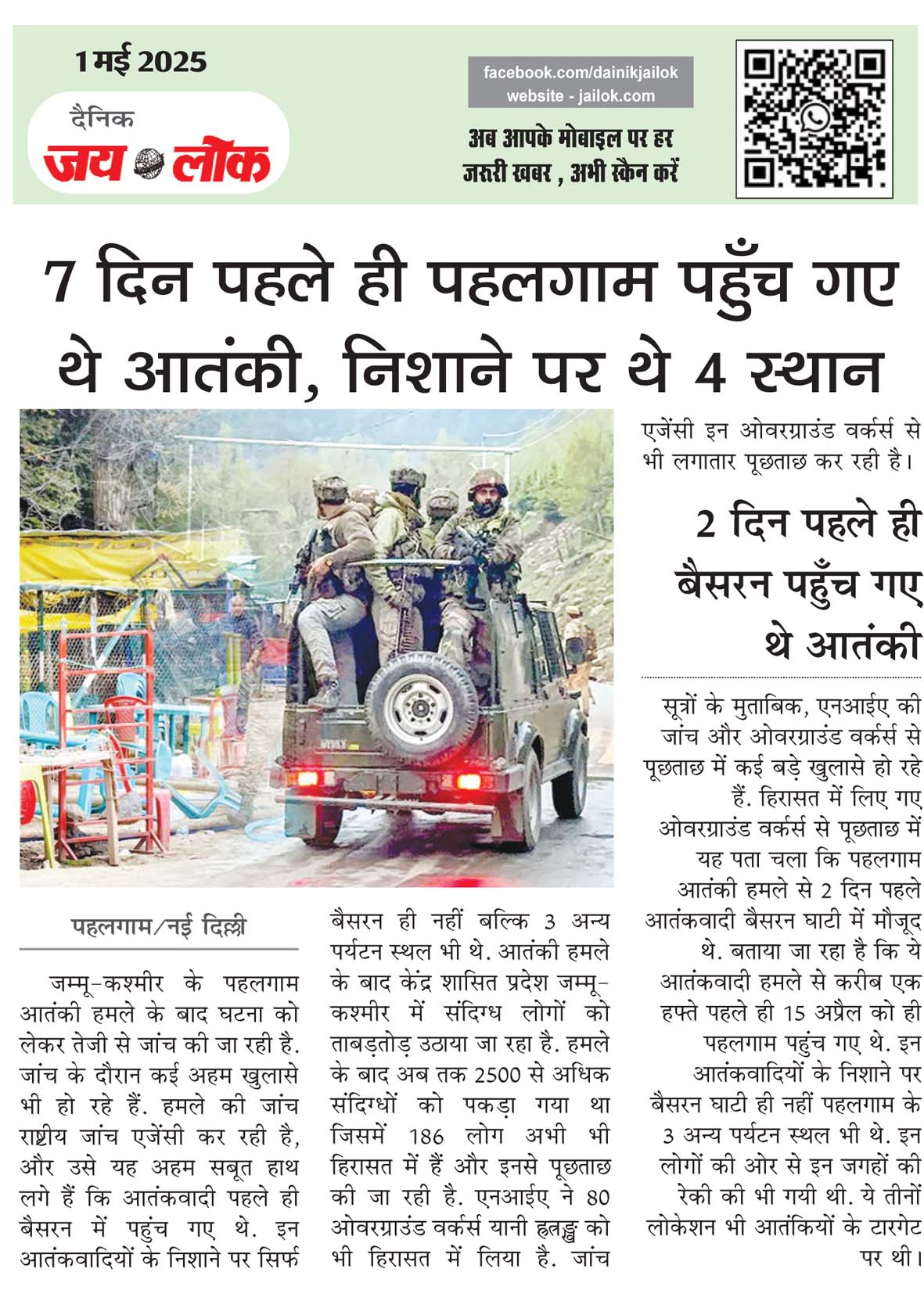 7 दिन पहले ही पहलगाम पहुँच गए थे आतंकी, निशाने पर थे 4 स्थान