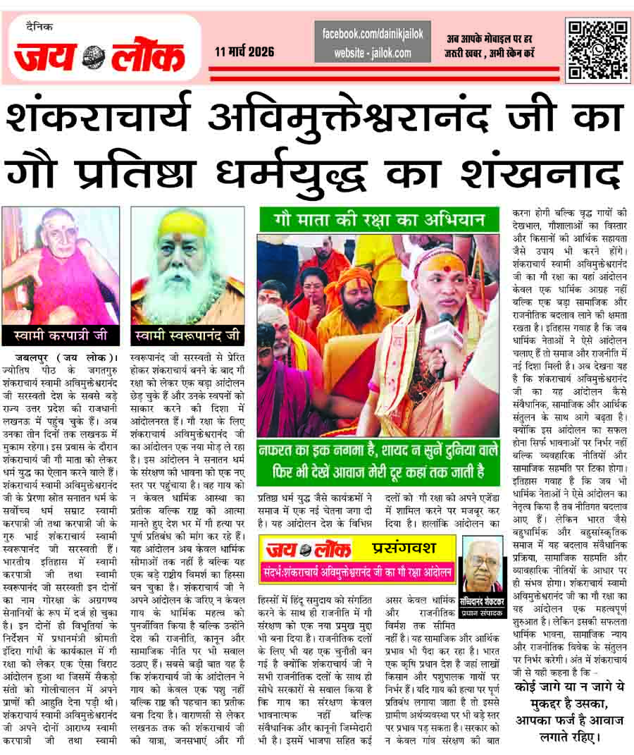 शंकराचार्य अविमुक्तेश्वरानंद जी का गौ प्रतिष्ठा धर्मयुद्ध का शंखनाद, नफरत का इक नगमा है, शायद न सुनें दुनिया वाले फिर भी देखें आवाज मेरी दूर कहां तक जाती है, गौ माता की रक्षा का अभियान