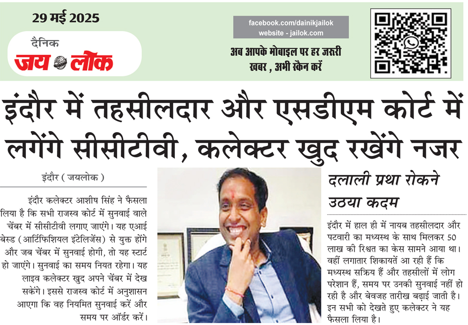 इंदौर में तहसीलदार और एसडीएम कोर्ट में लगेंगे सीसीटीवी, कलेक्टर खुद रखेंगे नजर