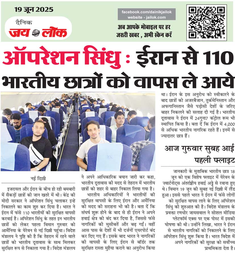 ऑपरेशन सिंधु : ईरान से 110 भारतीय छात्रों को वापस ले आये