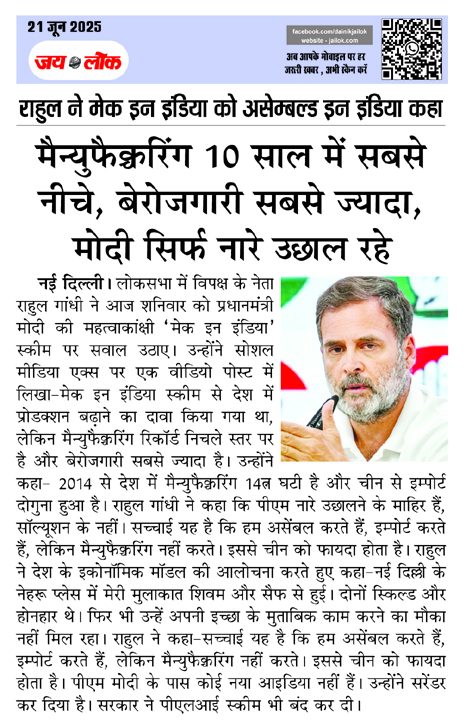 राहुल ने मेक इन इंडिया को असेम्बल्ड इन इंडिया कहा