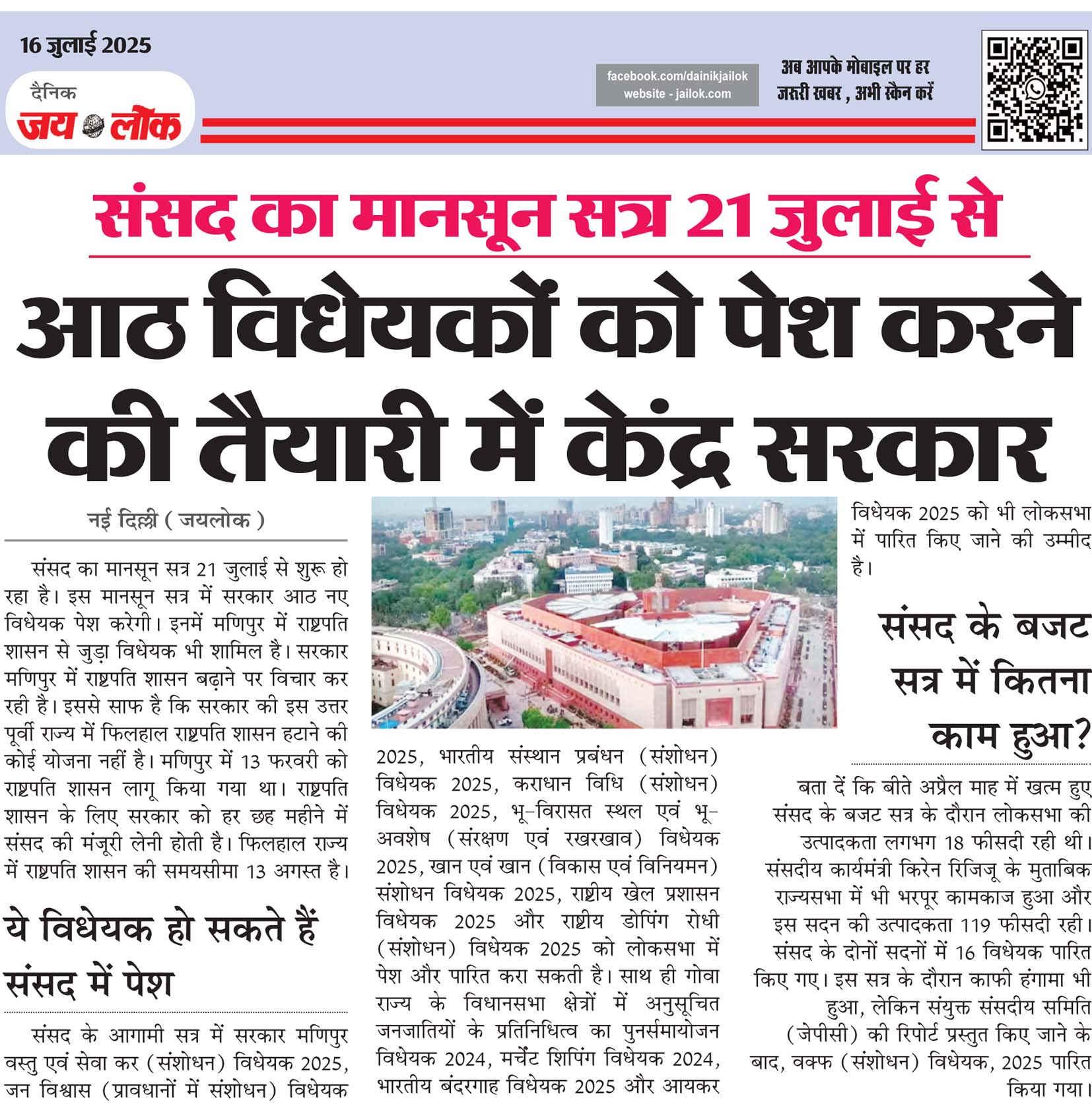 संसद का मानसून सत्र 21 जुलाई से, आठ विधेयकों को पेश करने की तैयारी में केंद्र सरकार