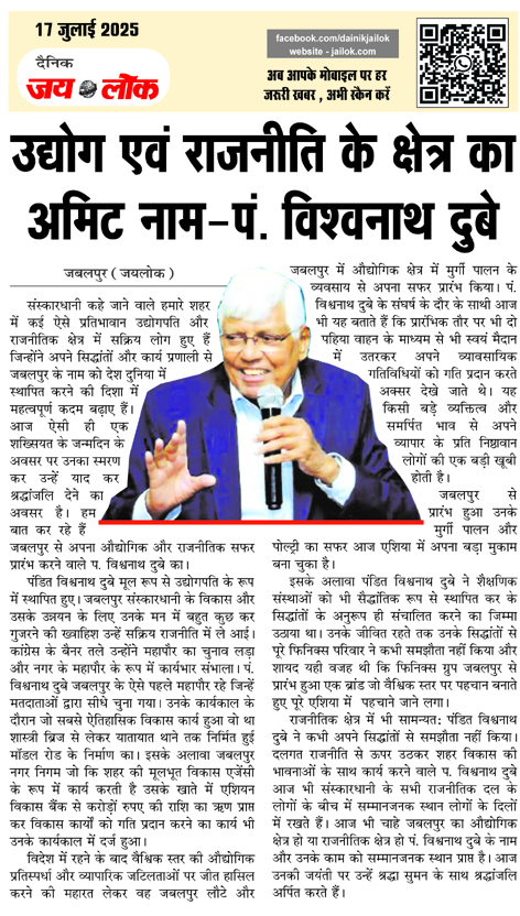 उद्योग एवं राजनीति के क्षेत्र का अमिट नाम-पं. विश्वनाथ दुबे