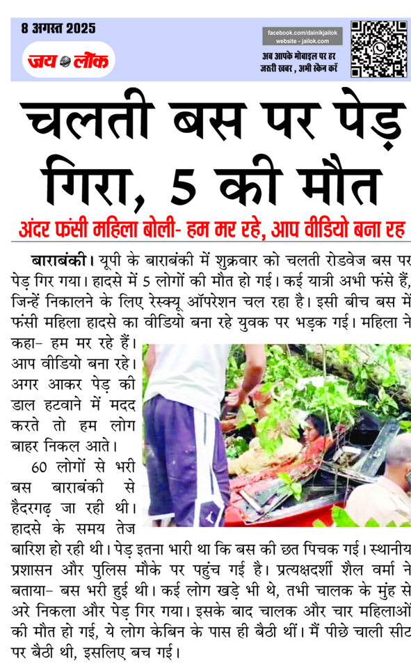 चलती बस पर पेड़ गिरा, 5 की मौत