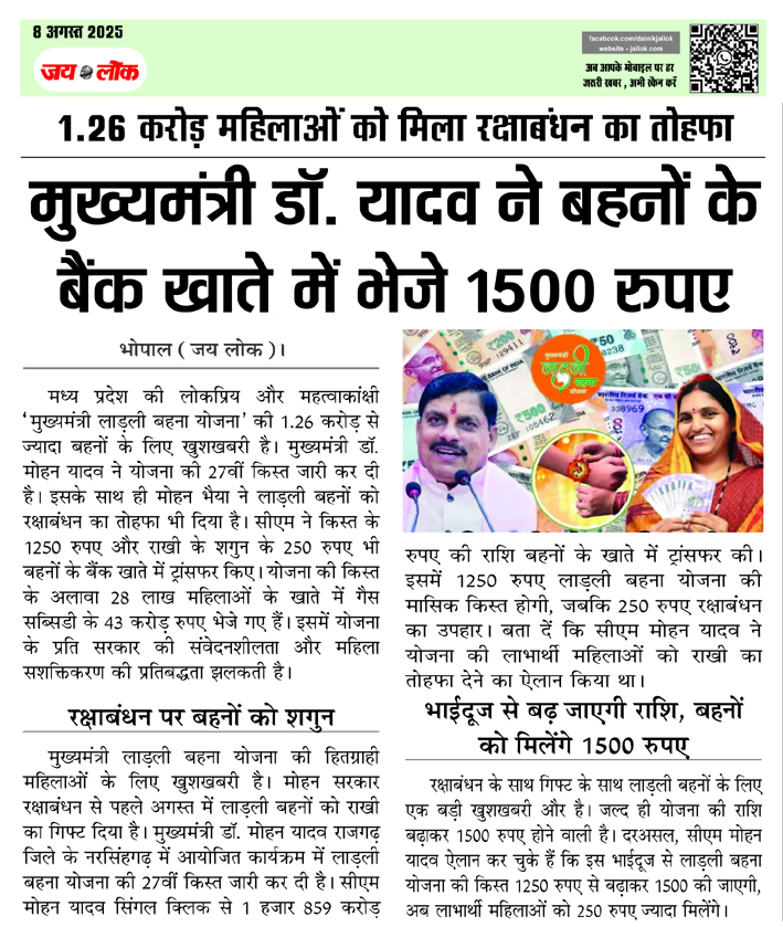 मुख्यमंत्री डॉ. यादव ने बहनों के बैंक खाते में भेजे 1500 रुपए