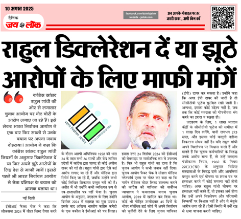 राहुल डिक्लेरेशन दें या झूठे आरोपों के लिए माफी मांगें,