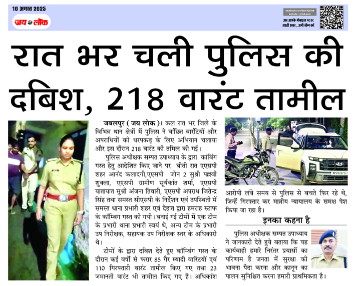 रात भर चली पुलिस की दबिश, 218 वारंट तामील