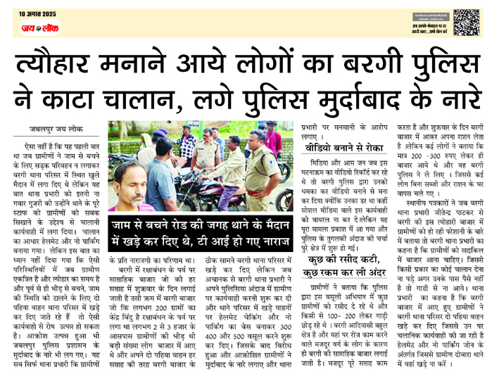 त्यौहार मनाने आये लोगों का बरगी पुलिस ने काटा चालान, लगे पुलिस मुर्दाबाद के नारे