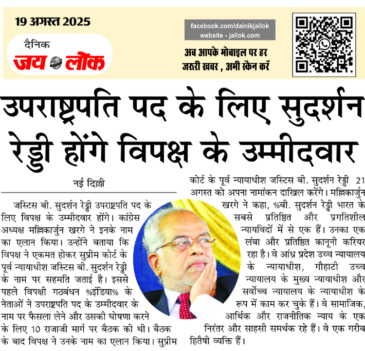 उपराष्ट्रपति पद के लिए सुदर्शन रेड्डी होंगे विपक्ष के उम्मीदवार
