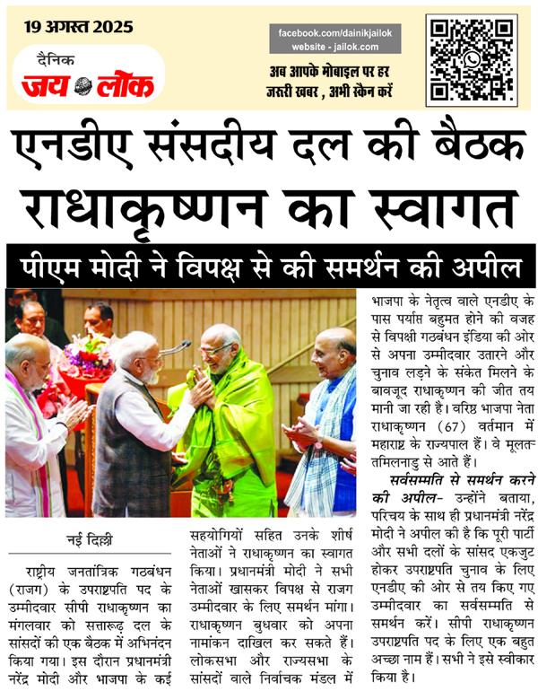 एनडीए संसदीय दल की बैठक राधाकृष्णन का स्वागत