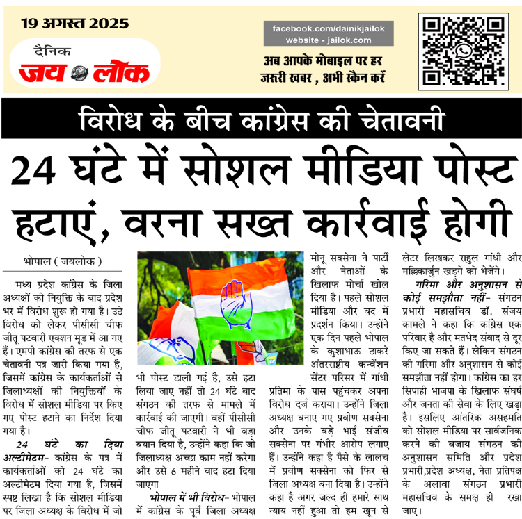 विरोध के बीच कांग्रेस की चेतावनी 24 घंटे में सोशल मीडिया पोस्ट हटाएं, वरना सख्त कार्रवाई होगी