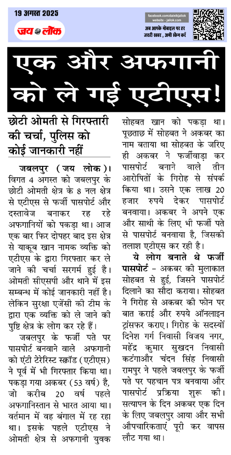 एक और अफगानी को ले गई एटीएस! छोटी ओमती से गिरफ्तारी की चर्चा, पुलिस को कोई जानकारी नहीं