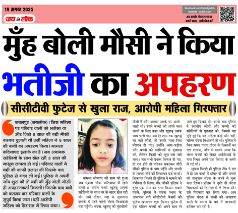 मुँह बोली मौसी ने किया भतीजी का अपहरण, सीसीटीवी फुटेज से खुला राज, आरोपी महिला गिरफ्तार