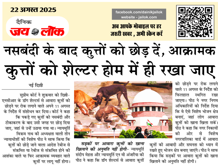 नसबंदी के बाद कुत्तों को छोड़ दें, आक्रामक कुत्तों को शेल्टर होम में ही रखा जाए