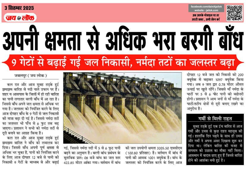 अपनी क्षमता से अधिक भरा बरगी बाँध