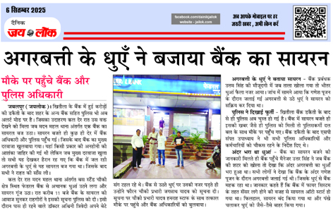 अगरबत्ती के धुएँ ने बजाया बैंक का सायरन , मौके पर पहुँचे बैंक और पुलिस अधिकारी