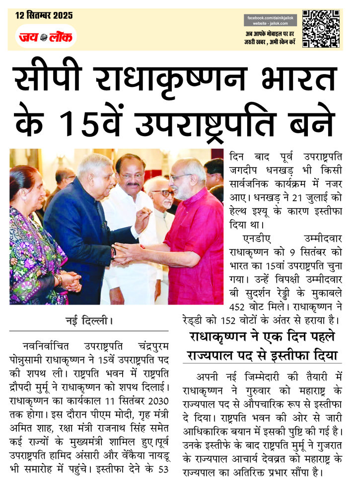 सीपी राधाकृष्णन भारत के 15वें उपराष्ट्रपति बने