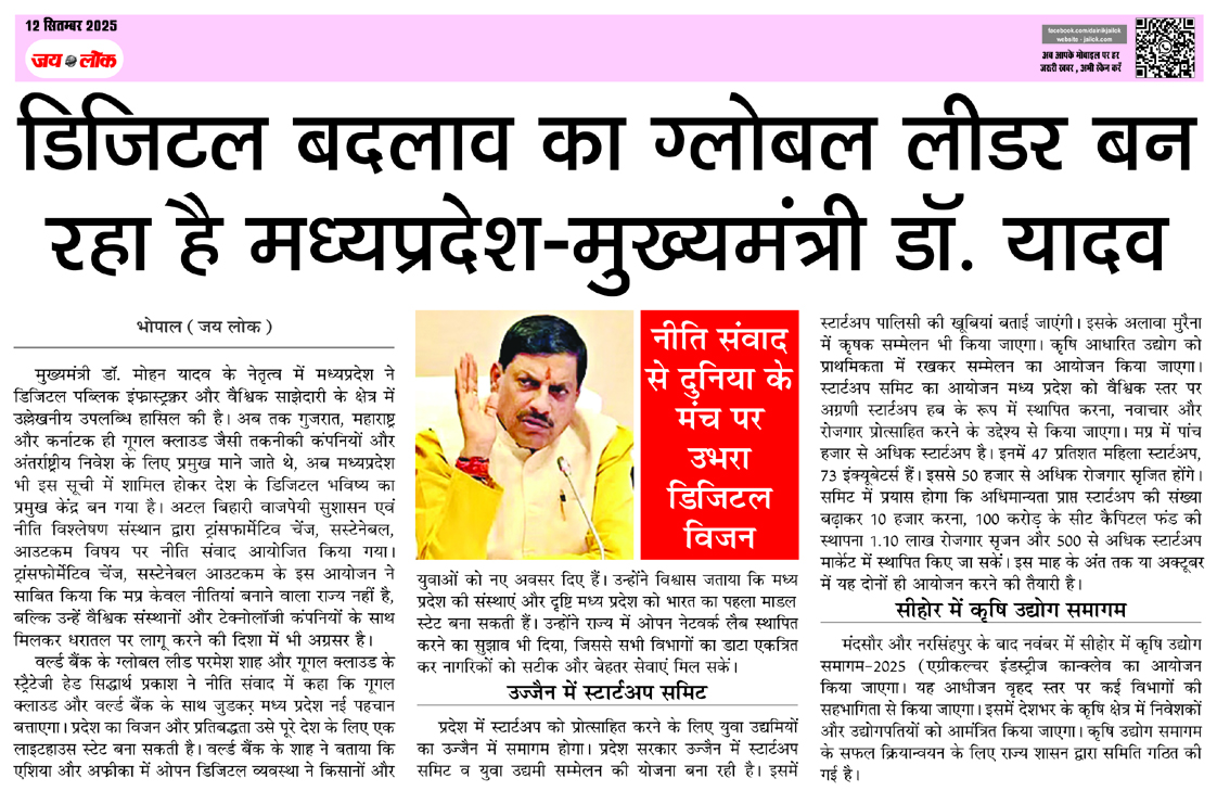 डिजिटल बदलाव का ग्लोबल लीडर बन रहा है मध्यप्रदेश-मुख्यमंत्री डॉ. यादव