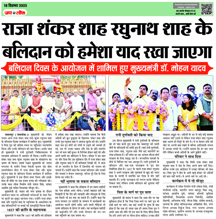 राजा शंकर शाह रघुनाथ शाह के बलिदान को हमेशा याद रखा जाएगा