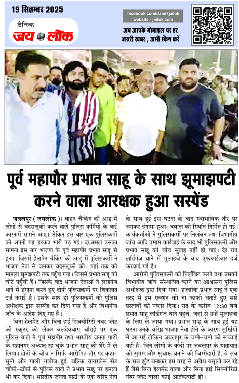 पूर्व महापौर प्रभात साहू के साथ झूमाझपटी करने वाला आरक्षक हुआ सस्पेंड