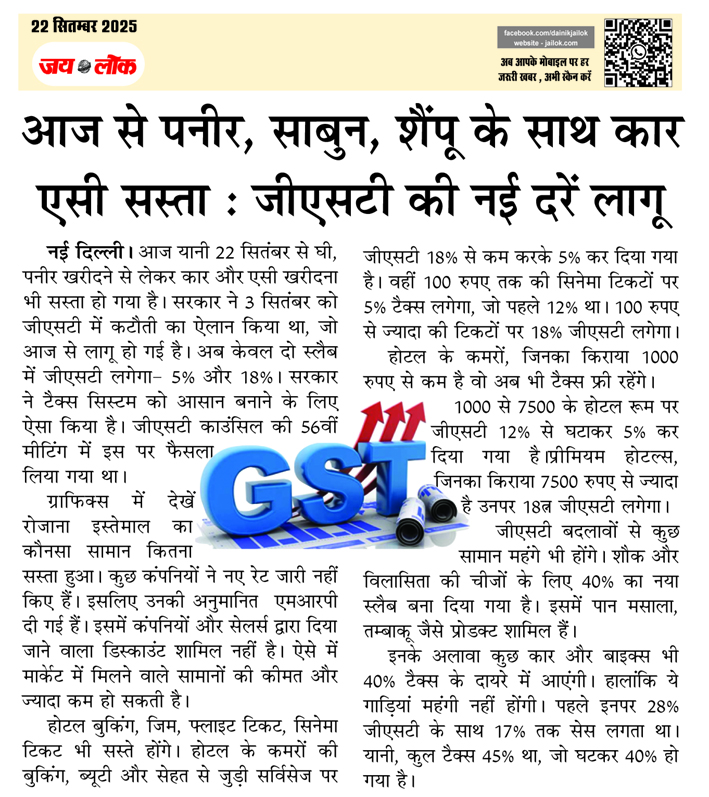 आज से पनीर, साबुन, शैंपू के साथ कार एसी सस्ता : जीएसटी की नई दरें लागू
