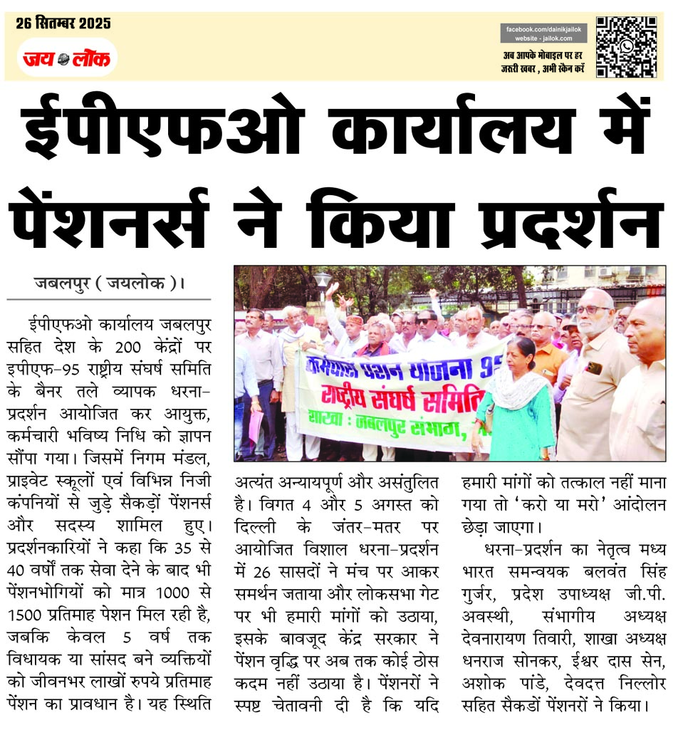 ईपीएफओ कार्यालय में पेंशनर्स ने किया प्रदर्शन