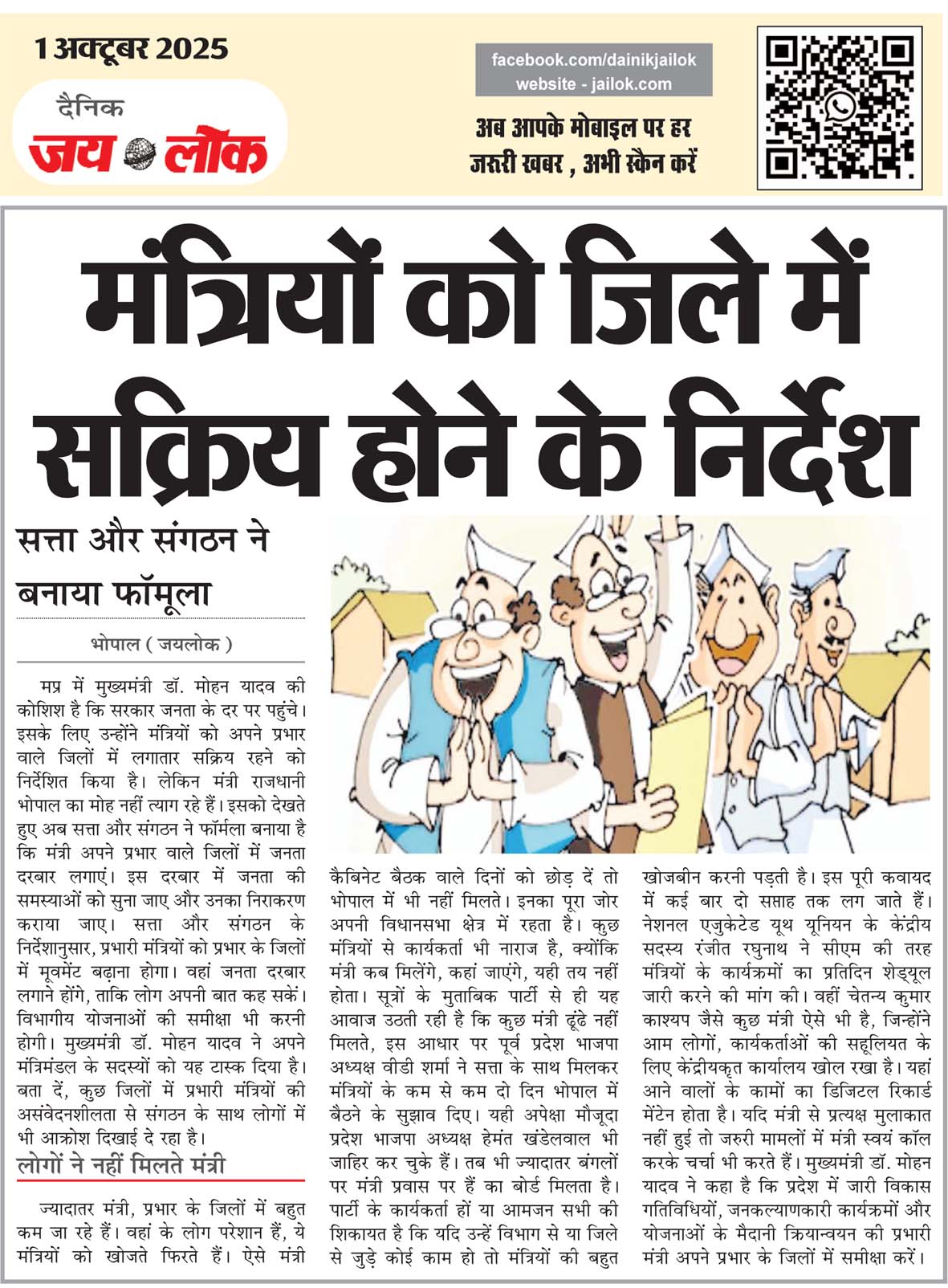 मंत्रियों को जिले में सक्रिय होने के निर्देश, सत्ता और संगठन ने बनाया फॉमूला